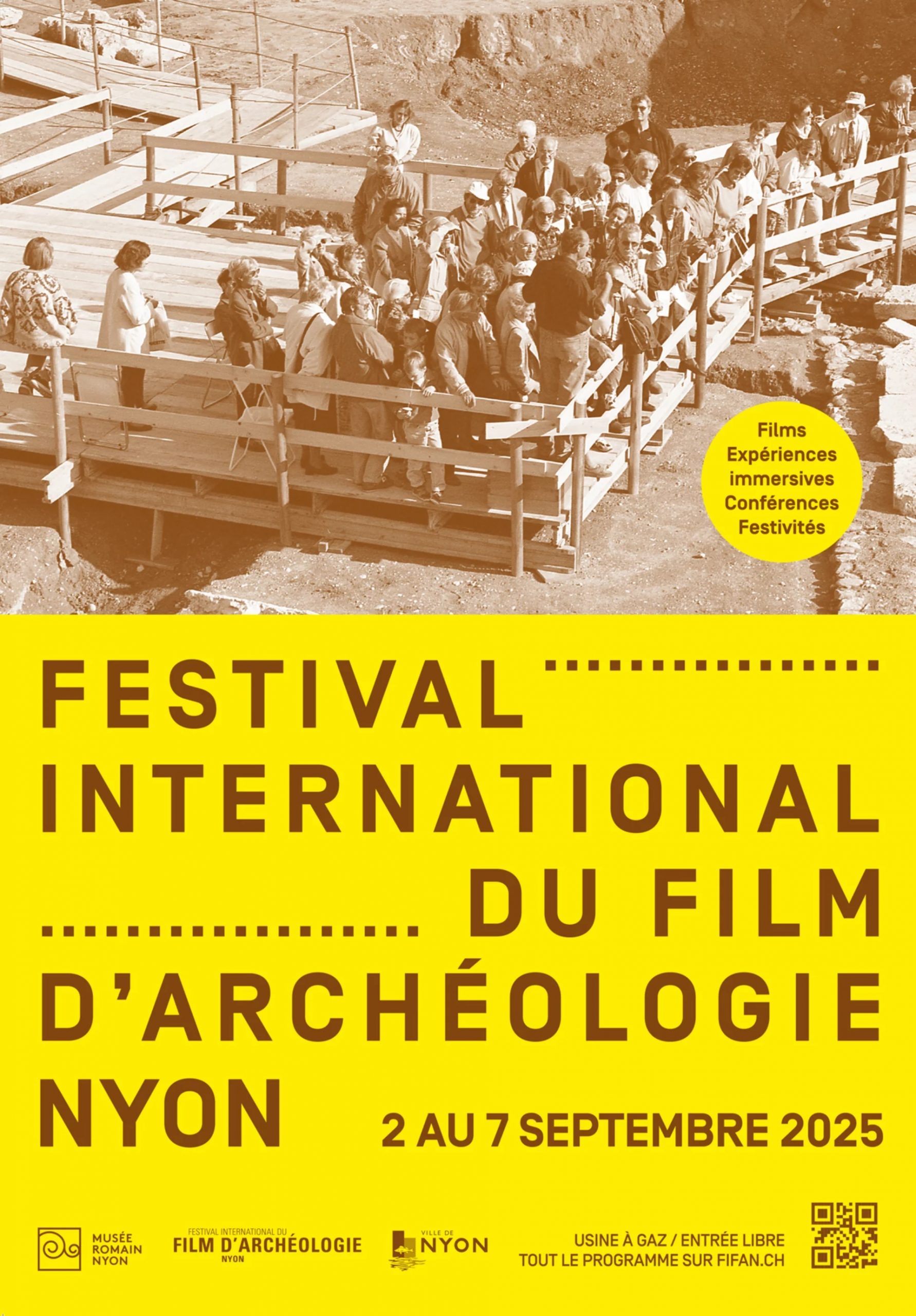 La 14ª edición del Festival Internacional de Cine de Arqueología de Nyon (FIFAN) se celebrará del 2 al 7 de septiembre de 2025 en la Usine à Gaz. Este evento bienal gratuito está dirigido a profesionales, aficionados a la arqueología y público en general. Explorará civilizaciones y diversos campos de la arqueología con una treintena de películas, complementadas con experiencias inmersivas y conferencias.