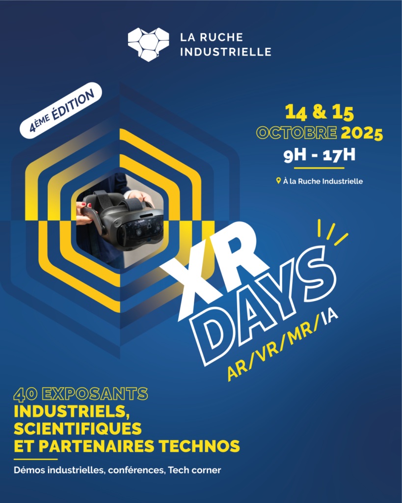 La 4ª edición de XR DAYS se celebrará los días 14 y 15 de octubre de 2025 en La Ruche Industrielle, en Venissieux. Esta cita profesional reúne cada año a los actores de la realidad aumentada, virtual, mixta y de inteligencia artificial, para dos jornadas de intercambio y demostraciones de los usos industriales de estas tecnologías.